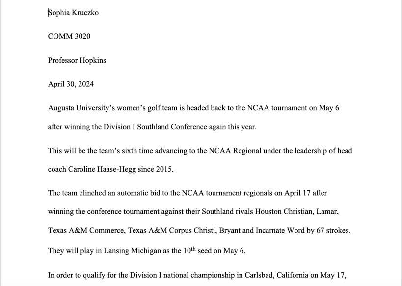 Augusta Women's Golf Team Heads Back to the NCAA Tournament